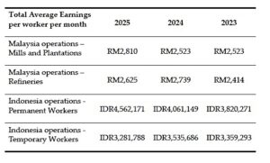 In our Malaysian operations, we do not have any temporary workers. However, in our Indonesian operations, during peak crop season (2-3months in a year), temporary workers are engaged which constitutes to around 10-12% of the total workforce (≈140 temporary workers out of total ≈1200 workforce) as of December 2025. The seasonal temporary workers are offered employment with similar wages as permanent employees, appropriate insurance coverage and medical facilities.