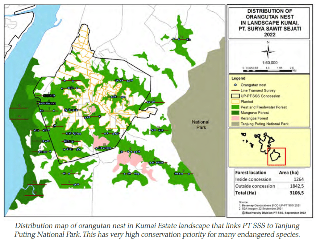 Our Kumai Estate in PTSSS is approximately 2km away from the famous Tanjung Puting National park which is known to have a large diversity of forest ecosystems, including lowland forest, freshwater swamp forest, tropical heath forest which is called “Kerangas”, peat swamp forest, mangrove forest and coastal forest.