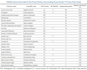 Through the past decade, the BioD Team has documented PT SSS’ HCV area rich with vertebrate species. In total 542 species including Mammals, Birds, Fish, reptiles and amphibians are recordedfrom this conservation area. Of these, 24 species are listed as Endangered (EN) and 5 species classified as Critically Endangered (CR) on the IUCN Red-list. This is not only very positive news; it also increases the company’s management mandate and responsibility, because the RSPO and ISPO Certification criteria include this as compulsory. PT SSS does not only measure biodiversity trends. Adaptive conservation management is applied proactively with continuous effect to explore the opportunity to engage with stakeholders such as the Indonesian Forestry Department (BKSDA), local NGOs, and local community in running conservation programs together. This collaborative approach gives nature and wildlife renewed hope for our shared future.