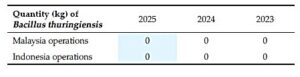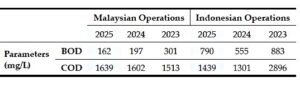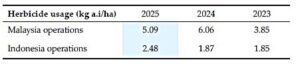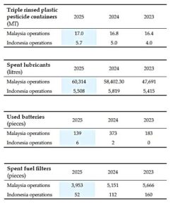 Water consumption rate in our Indonesian operation has improved over the recent years and is now holding steady whereas the mill water consumption rate in our Malaysian operations has also improved with the phasing out of the older mill and the commissioning of the new Optimill. We aim to reduce the average of 1.2MT water/MT FFB by 2030 for both Malaysian and Indonesian operations.