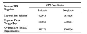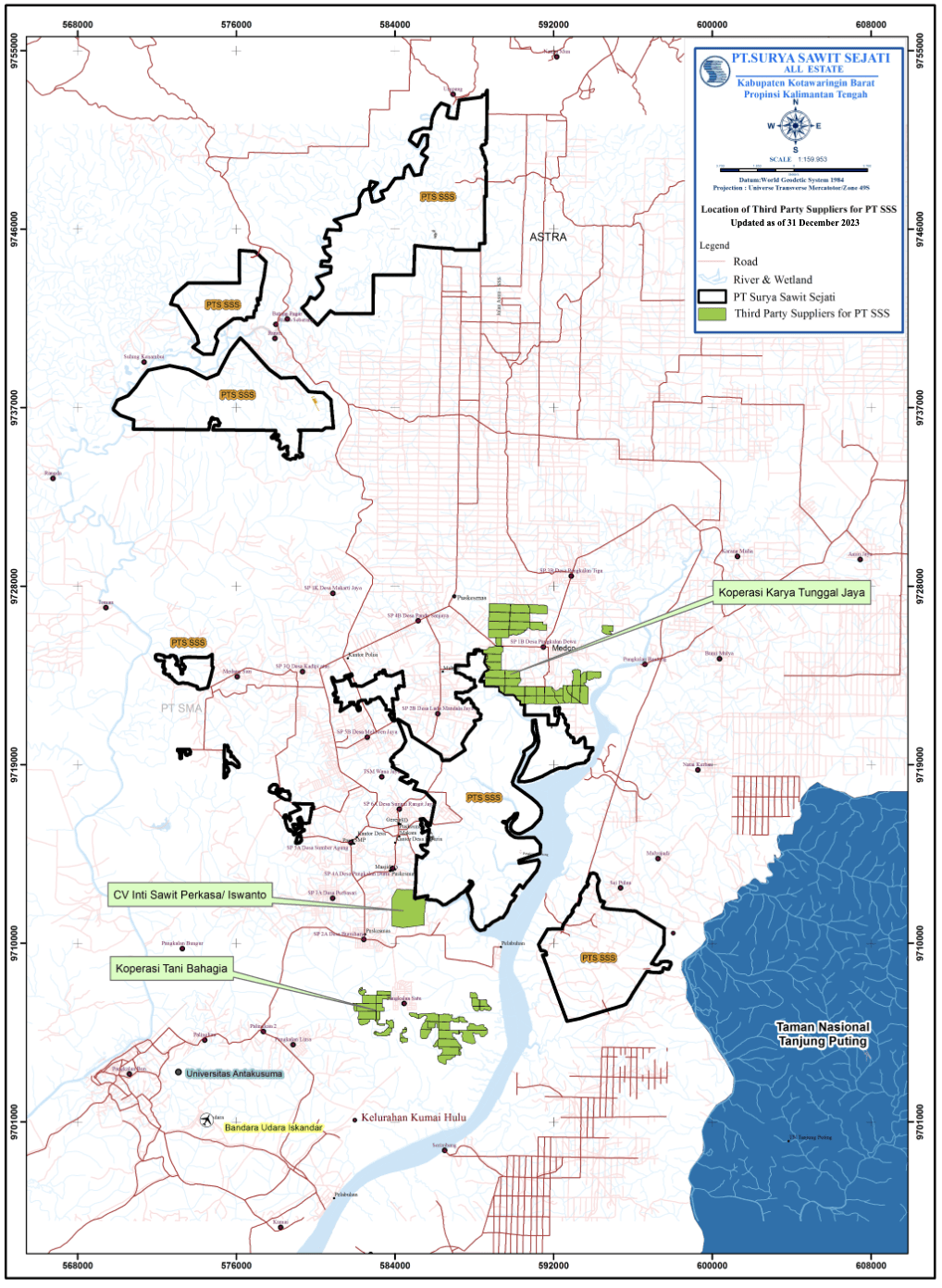 The location of third-party FFB suppliers for PTSSS is tabulated below: