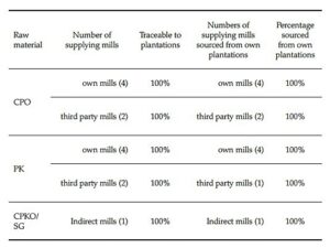Our direct and indirect supplier mills for CSPO and RSPO SG CPKO are 100% traceable to plantations level, however our indirect supplier mills for conventional CPKO (via Kernel Crushing Plants/ KCPs) are 100% traceable to mills level. We are working closely with our KCPs to reach out to our indirect supplier mills to improve the traceability of CPKO to plantations level.