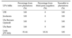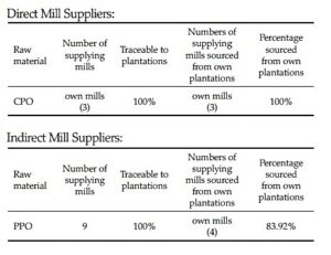 All of the above own and third-party supplying mills 100% source from their own plantations.