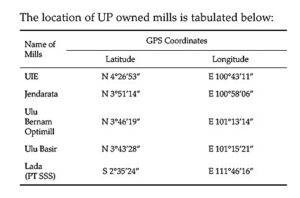 UP owned mills in Malaysia are sourcing FFB from UP owned RSPO and MSPO certified plantations only. The geocoded map/shapefiles of the plantations is available in the GeoRSPO website, please click here